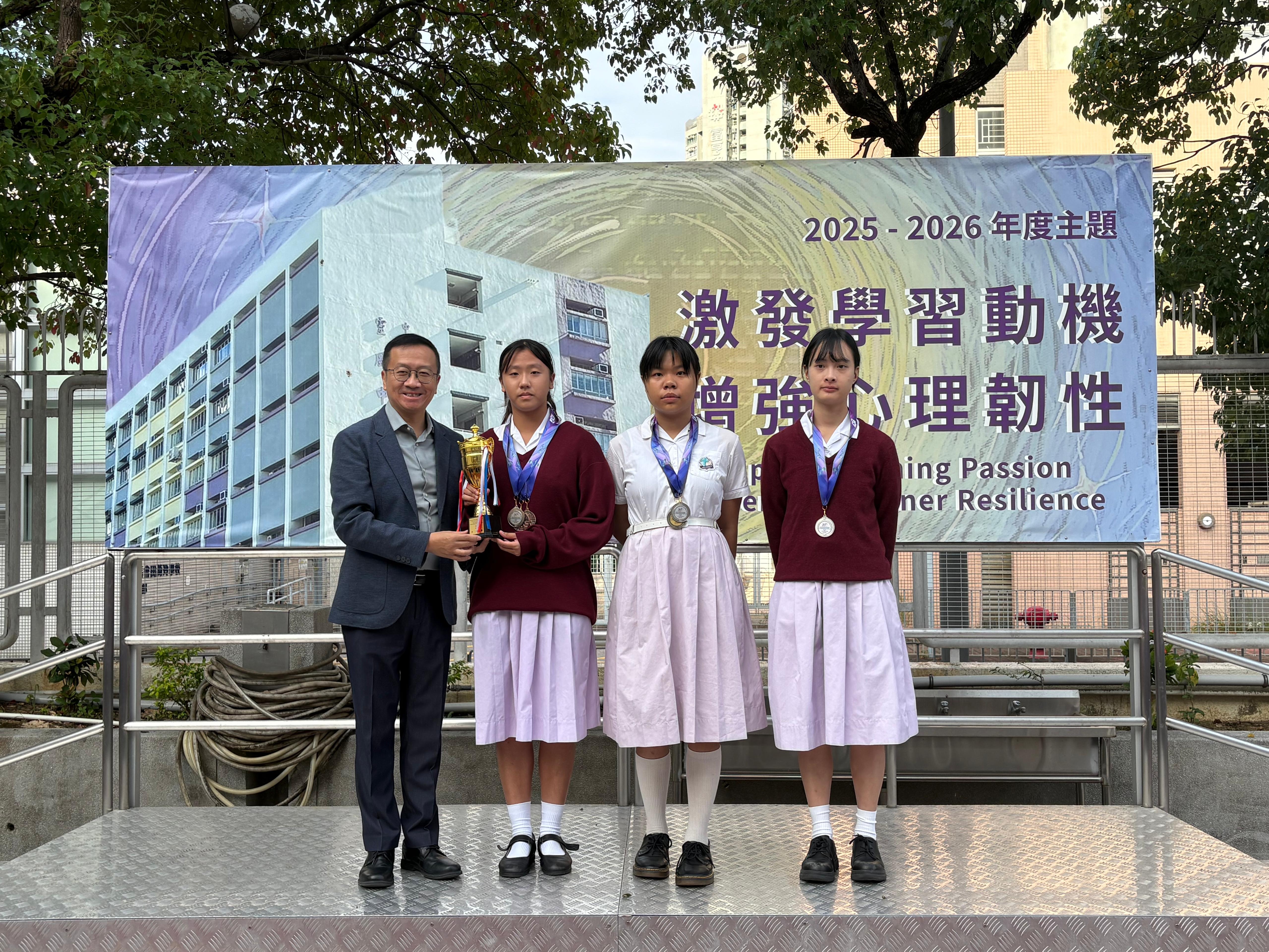 本校泳隊於2025年10月17及22日參加由中國香港學界體育聯會大埔及北區分會舉辦的「2025-2026年度大埔及北區中學校際游泳比賽」,各校參加情況非常踴躍,總比賽人數超過500人,隊數超過160隊,來自40間大埔及北區中學。雖然比賽競爭激烈,但本校泳隊男女健兒仍能取得佳績。團體總成績,女子組第9名,男子組第15名,並且取得不少個人及接力獎項,茲將各得獎名單臚列如下,以示表揚及祝賀。