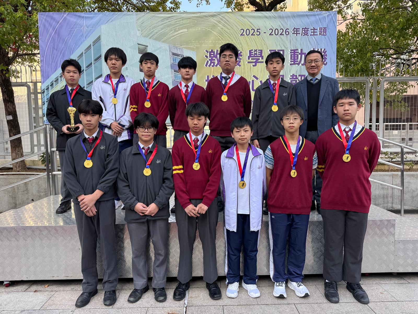校長與獲獎同學及家長一同出席2026年2月28日在迦密聖道中學舉行的頒獎典禮,對同學的努力給予肯定和支持。